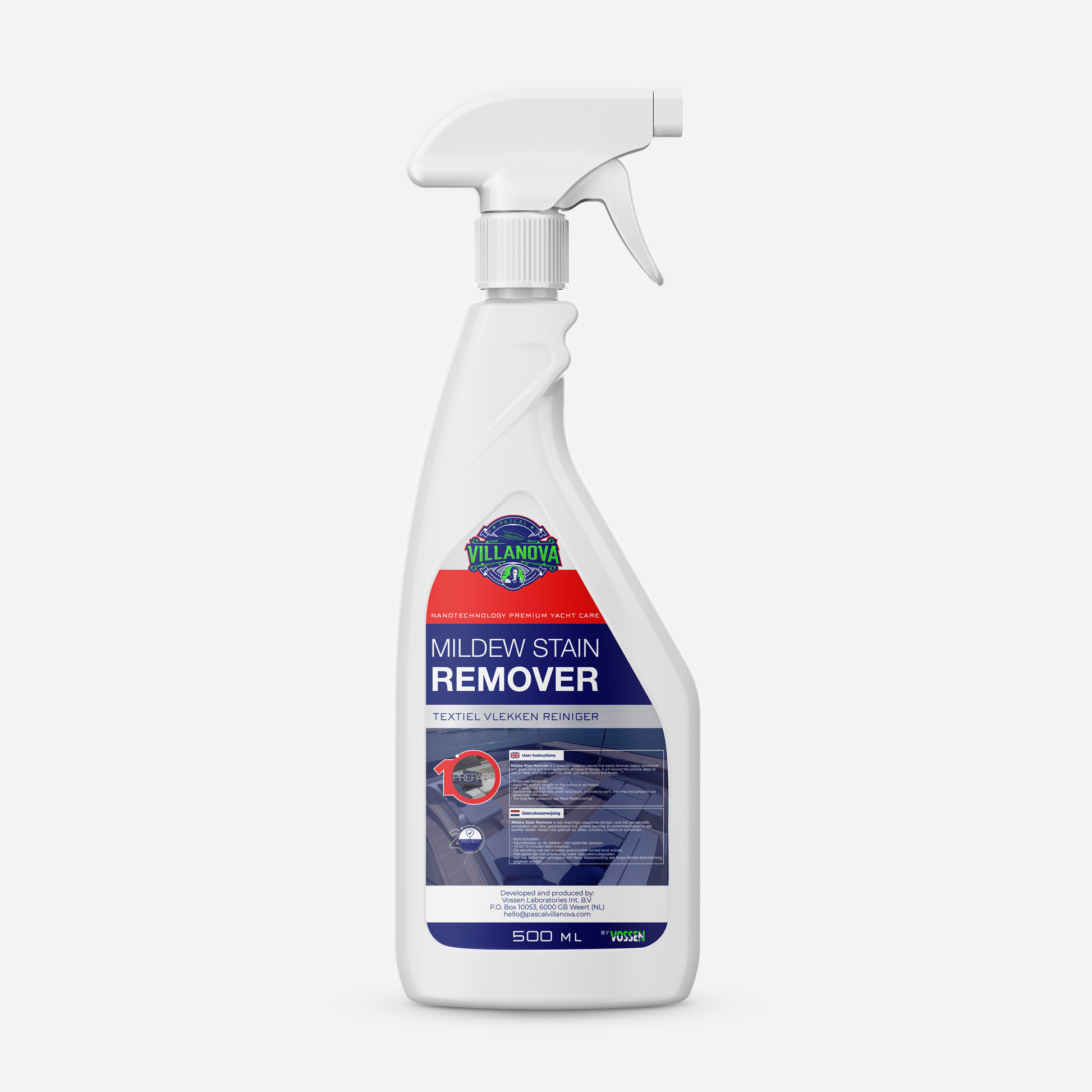 Mildew Stain Remover is a powerful oxidative cleaner that easily removes deeply penetrated dirt, green slime and stain spots from all types of textiles. It will recover the colours. Ideal for use on sails, vinyl boat cushions, boat- and spray hoods and hoods. Preparation: the wearing of appropriate protective clothing, rubber gloves and safety glasses is necessary. Make sure to provide adequate ventilation. Don’t eat, drink or smoke during use. The product has a bleaching force. In case of doubt for use make a test on a not in the eye-catching piece. To prevent discolouring of other materials protect these by covering.